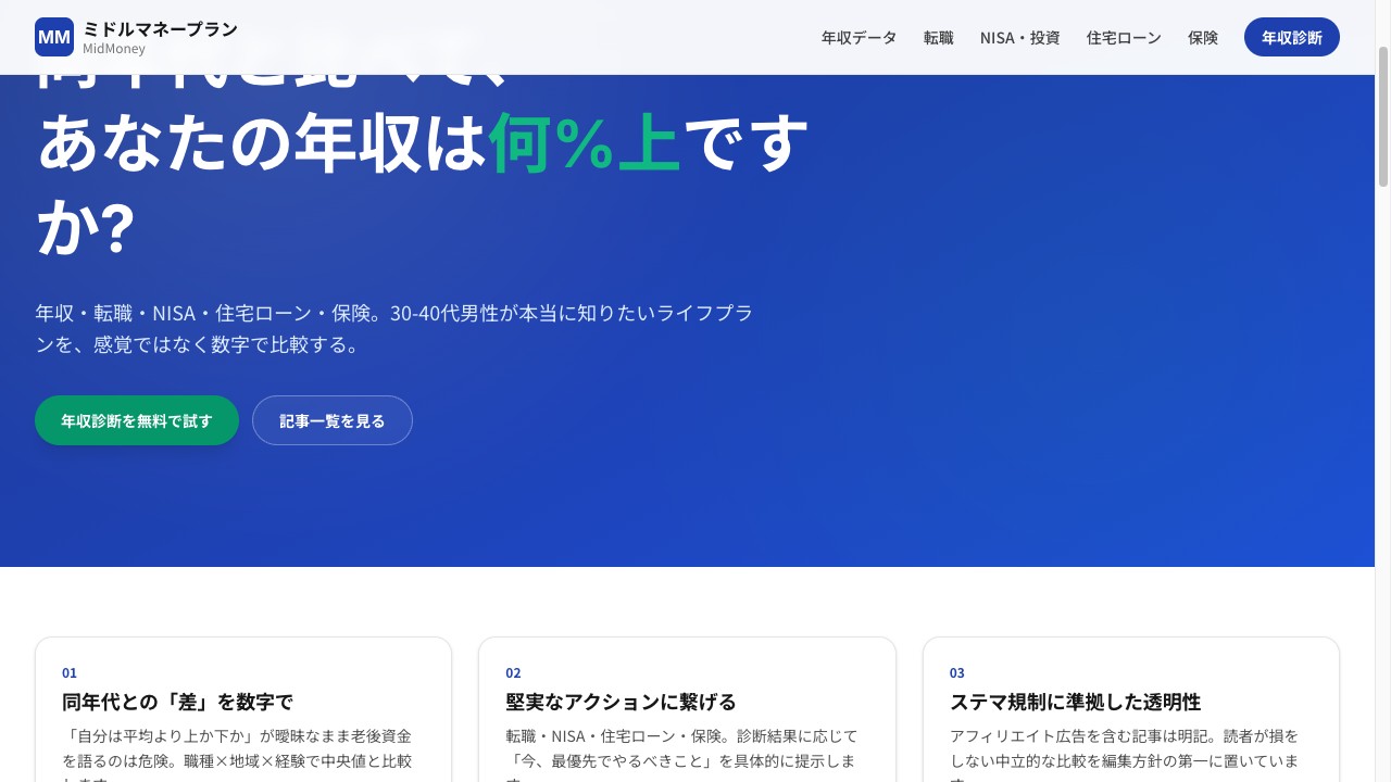 MidMoney年収・転職・NISA・住宅ローンまで、データに基づいた堅実なライフプラン比較メディア。